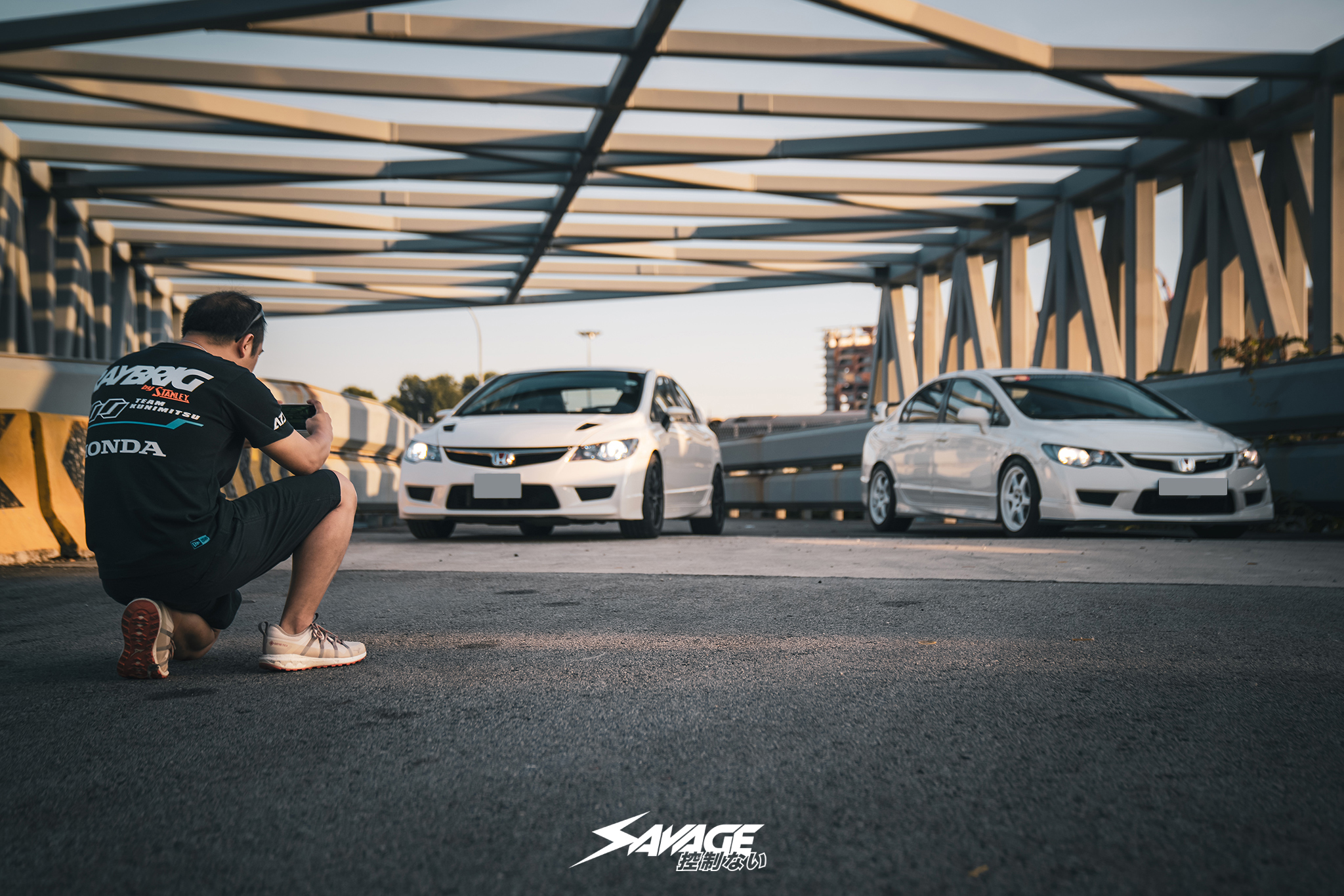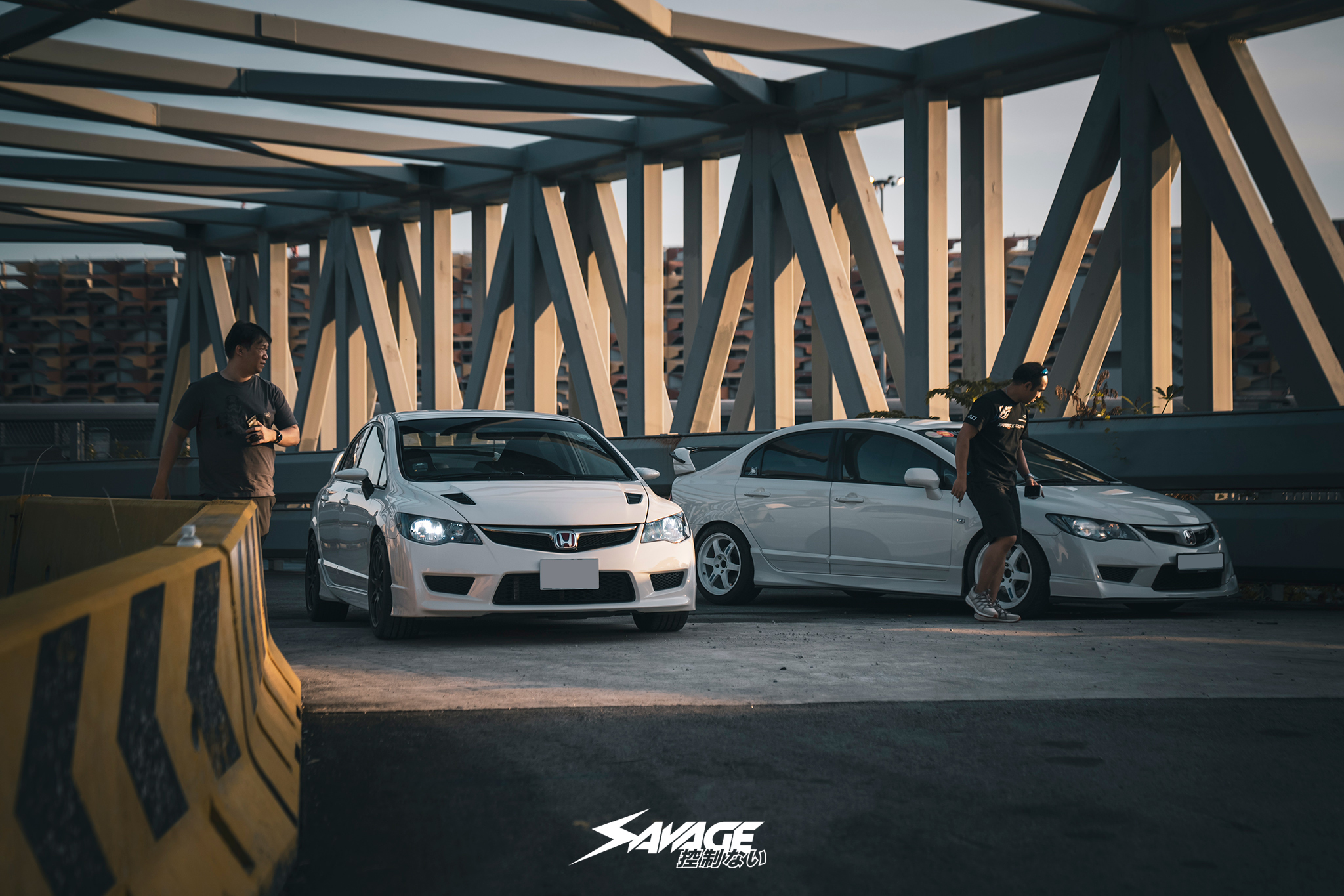 Today, they met up at Cartisan, a well-known and reputable workshop, eager to take their refined Type Rs out for a sunset drive. Rolling out side by side, their Championship White paintwork gleamed as the sun started to dip for the day, casting a golden glow over the city streets. The exhaust notes harmonised as they cruised, their cars practically twins in appearance yet unique in character. Each gear shift unleashed the full, naturally aspirated power of the K20 engine, raw and unfiltered, a driving experience untouched by modern cars’ insulation.